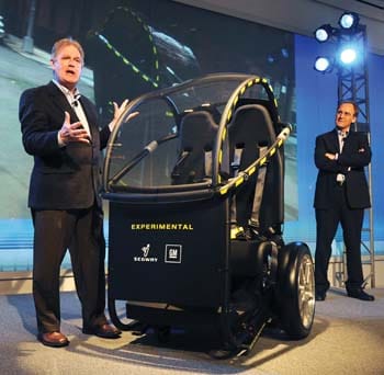 GM and Segway announced their collaboration, while demonstrating the Project P.U.M.A. prototype in New York on April 7. “Project P.U.M.A. represents a unique solution to moving about and interacting in cities, where more than half of the world’s people live,” said Larry Burns, GM vice-president of research and development, and strategic planning. “Imagine small, nimble electric vehicles that know where other moving objects are and avoid running into them. Now, connect those vehicles in an Internet-like web and you can greatly enhance the ability of people to move through cities, find places to park and connect to their social and business networks.”