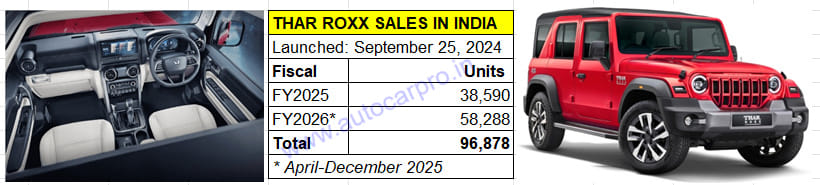 The Thar Roxx has sold 96,878 units till end-December 2025, just 3,122 units shy of the 100,000-units milestone which would have been achieved in the first fortnight of January 2026.