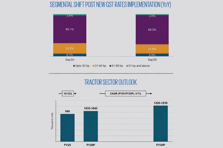 The recent reduction in GST rates on tractors from 12% to 5% implemented from. 22nd September, coupled with festive demand and ongoing government financing schemes, has further stimulated tractor demand.