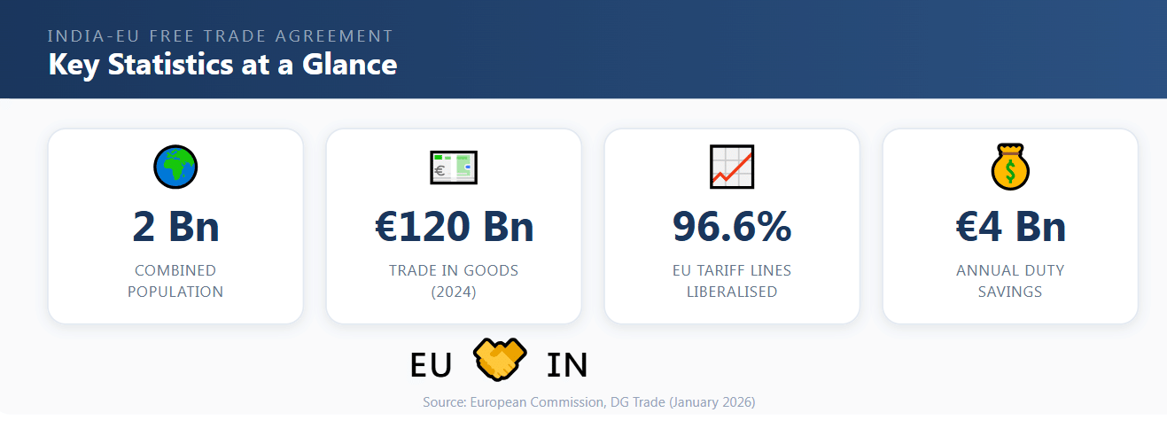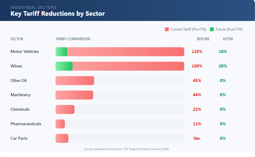 The European Commission describes this as the most ambitious trade opening that India has ever granted to a trade partner. India will grant the EU tariff reductions that none of its other trading partners have received, giving EU companies a significant competitive advantage for access to the world's most populous country.
