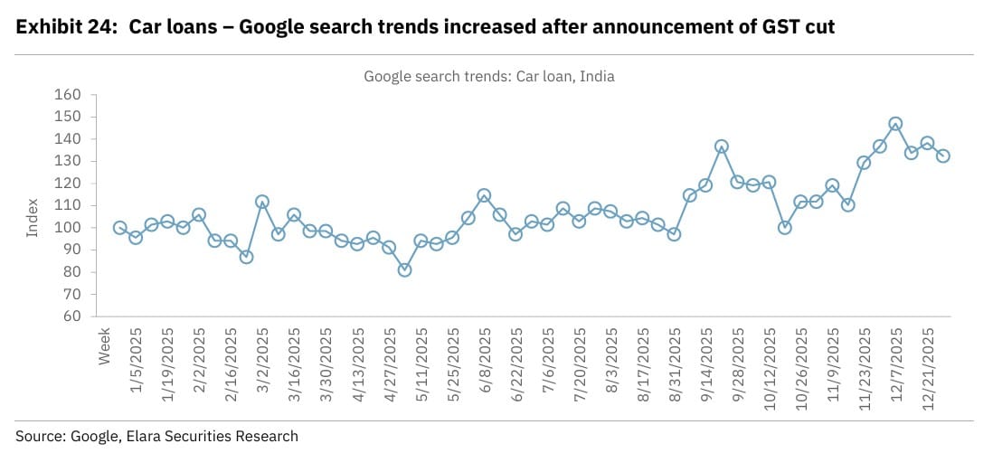India’s automobile industry is seeing a broad-based demand recovery following the rollout of GST 2.0, prompting Elara Capital to raise its volume growth estimates for most vehicle segments for FY26 and FY27.