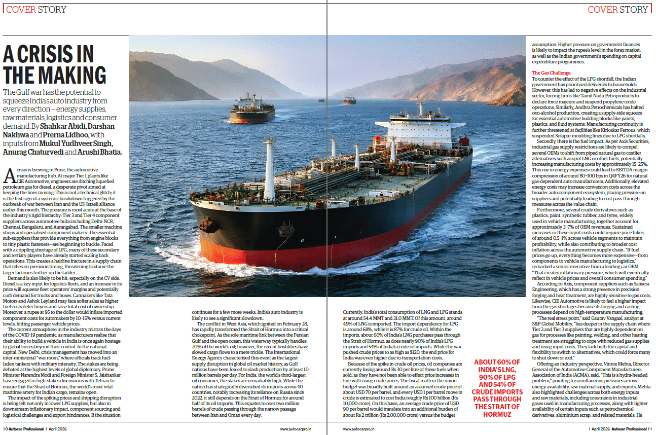 This edition of Autocar Professional captures an inflection point for India’s automotive industry, where a strong post-GST recovery is now intersecting with fresh global uncertainties. Just as the sector was transitioning from resilience to acceleration after years of disruption, renewed geopolitical tensions in West Asia have introduced new risks into an already complex operating environment.