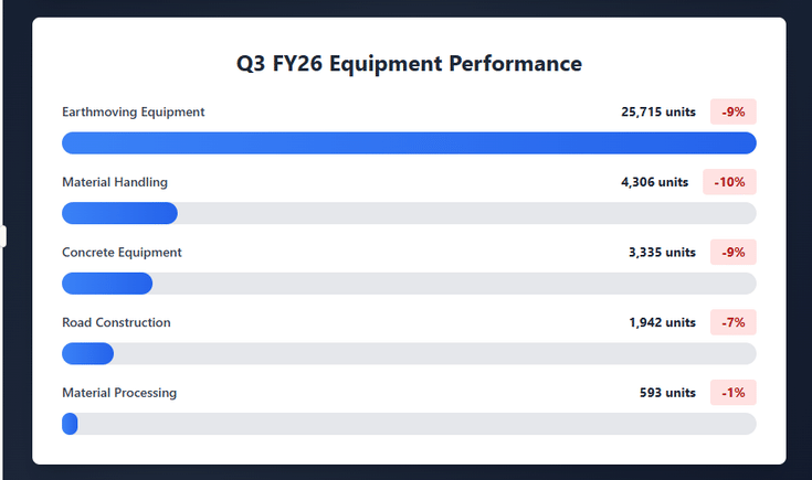 Slower government project awards, particularly in roads and highways, railways, and other infrastructure segments, have directly impacted equipment demand.
