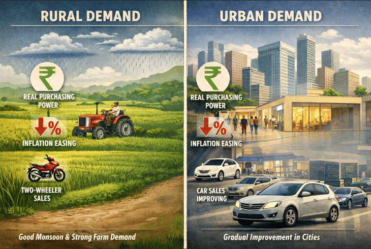 Urban consumption is less dependent on agricultural cycles and more on steady employment and wage growth, which may explain why its recovery is described as gradual.