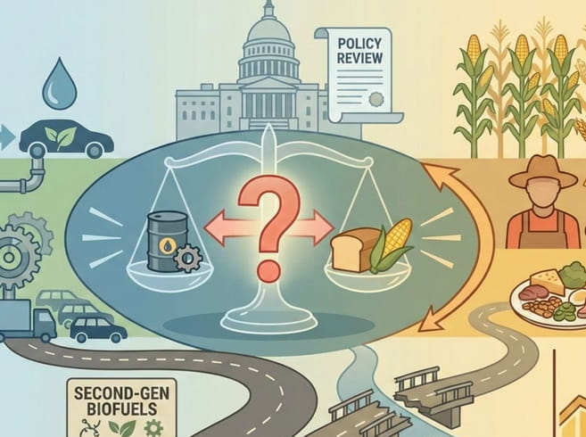 The Survey's mention of "lignocellulosic options" and international moves toward "second-generation biofuels" points to a potential solution: ethanol produced from agricultural waste, forest residue, and other non-food biomass.