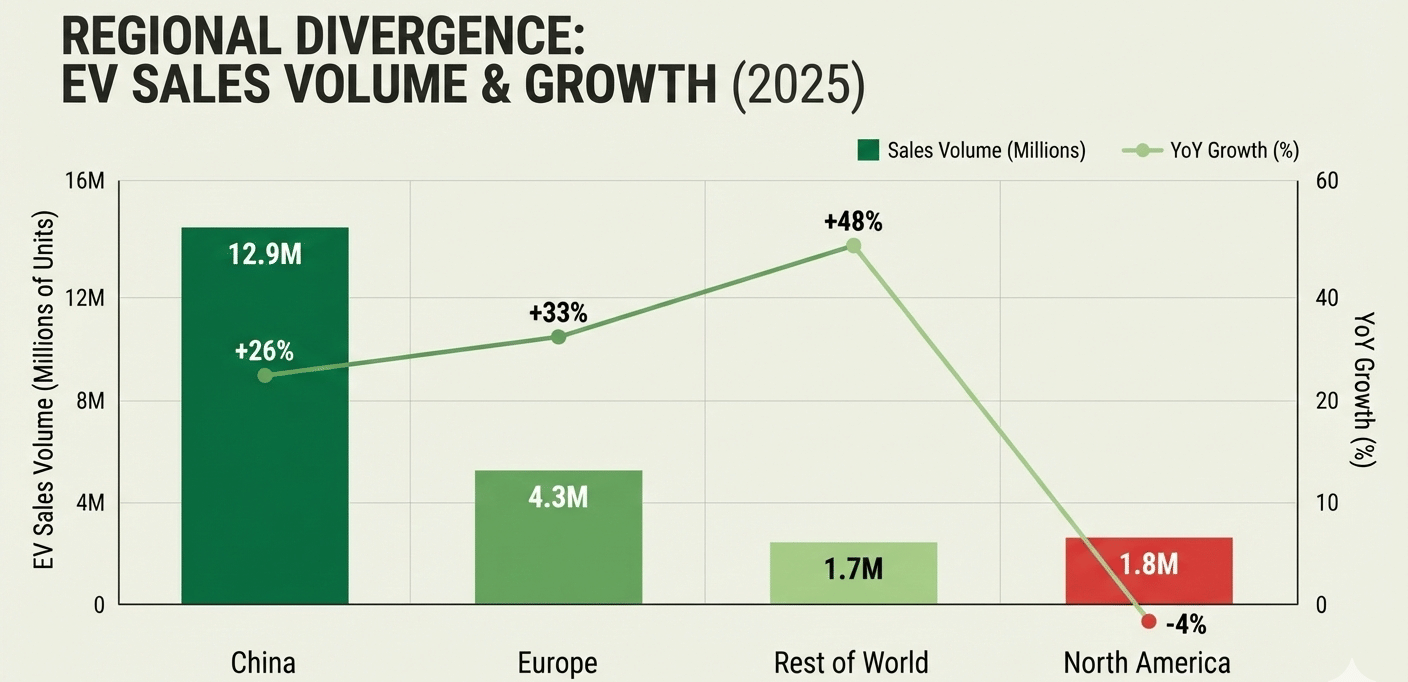 Global EV Sales Reach 20 Million Units as Regional Divergence Widens Under Shifting Policies