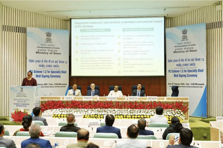 The Government of India launched the Production Linked Incentive (PLI) Scheme 1.2 for Specialty Steel on Sunday, aiming to strengthen high-value manufacturing and reduce import dependence in critical steel grades. The launch ceremony at Vigyan Bhawan in New Delhi saw the signing of Memoranda of Understanding with industry participants.