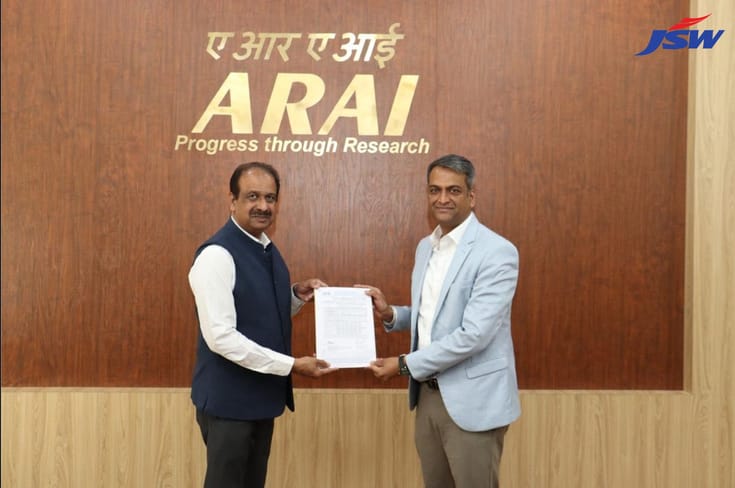 JSW Greentech has received the CMVR Type Approval Certificate for its “JSW 12M 51+D AC SDX” electric bus from the Automotive Research Association of India (ARAI), marking a key regulatory milestone for the company’s commercial electric vehicle portfolio. JSW is likely to produce this bus out of its factory in Aurangabad
