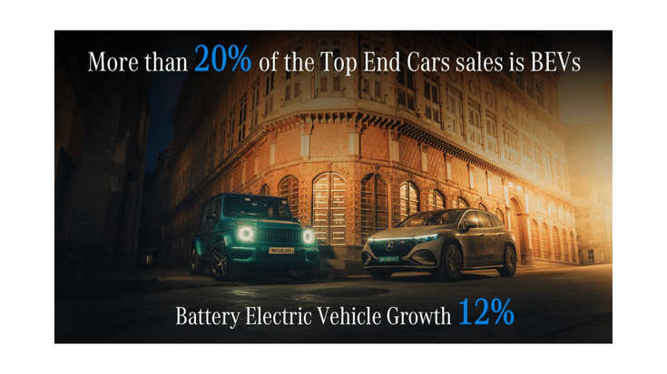 Battery electric vehicles grew 12% and comprised 20% of all top-end Mercedes-Benz vehicles sold in India. The company reported that 70% of its electric vehicles sold in 2025 were priced between Rs 1.25 crore and Rs 3.10 crore, with the EQS SUV remaining the highest-selling luxury electric vehicle.