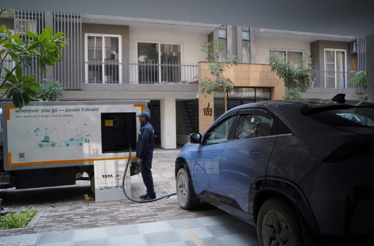 Tata.ev is a brand under Tata Motors, one of several automakers competing in India's growing electric passenger vehicle segment. Hopcharge operates mobile EV charging units and has been active in the NCR region.