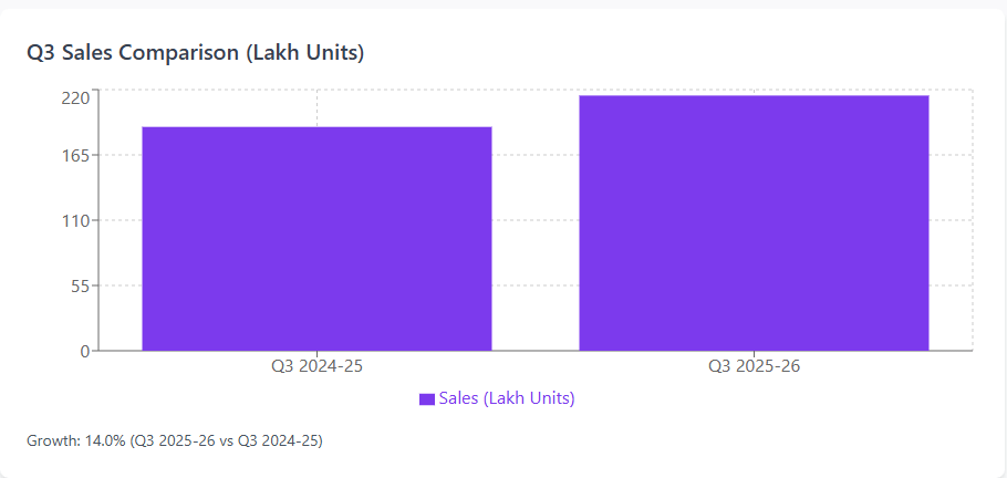 Three-wheeler sales in India reached their highest ever third-quarter performance with 2.15 lakh units sold in Q3 of 2025-26, marking a 14.0% growth compared to the same quarter last year, primarily driven by the passenger carrier sub-segment amid rising urban and semi-urban transportation demand.