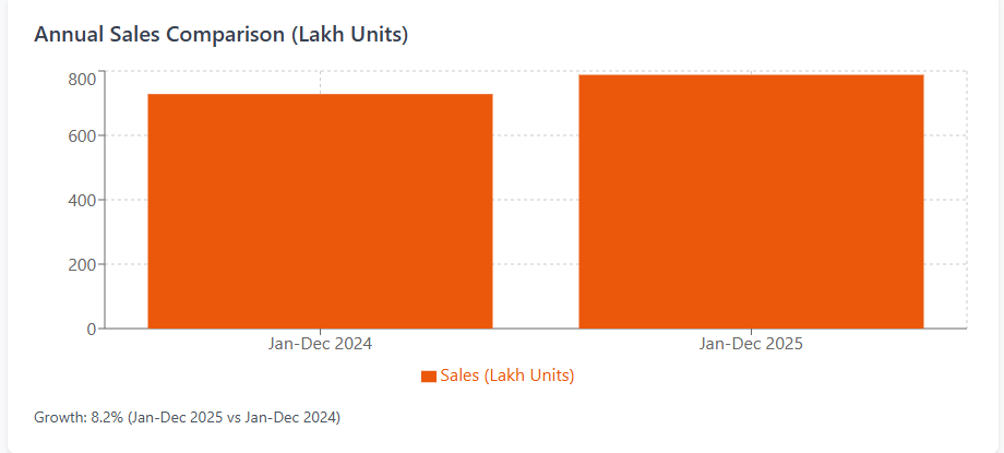 The calendar year performance of 7.88 lakh units sold between January and December 2025 marks a new peak for the industry, demonstrating consistent month-on-month traction despite seasonal variations typically observed in the automotive sector.