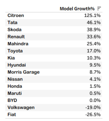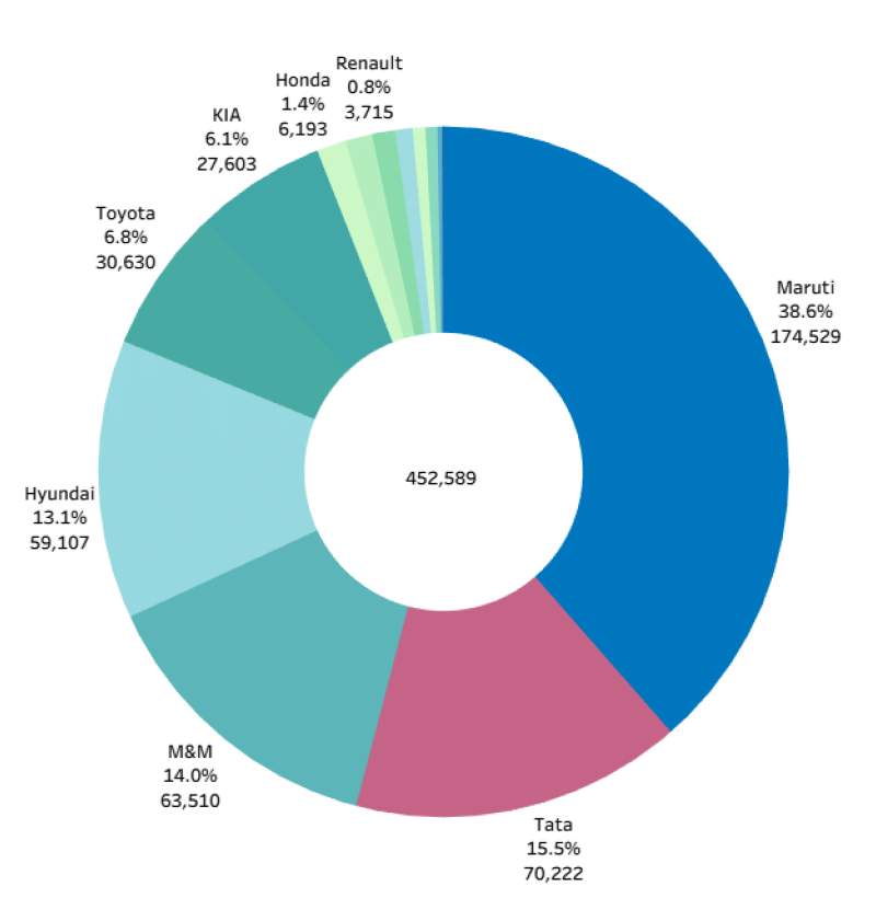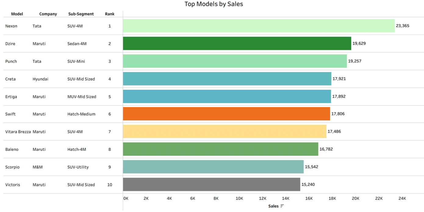 3. The top selling model this month has been the Nexon from Tata which at 23,365 is also its lifetime high sales.