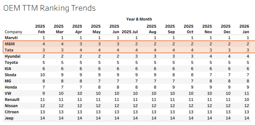 In the TTM numbers Mahindra has been consistently at Rank 2